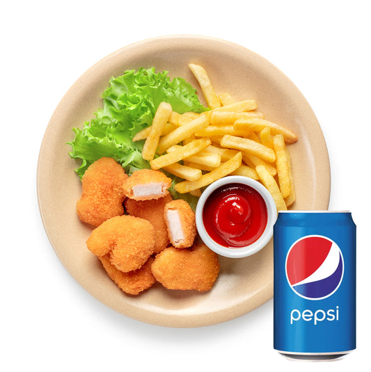 Kids Meal Deal 1 : Chicken Nuggets (6) with Chips and Sauce and Pepsi Can